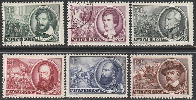 Венгрия 1952 год. Герои 1848 года и исторические картины. 6 гашёных марок