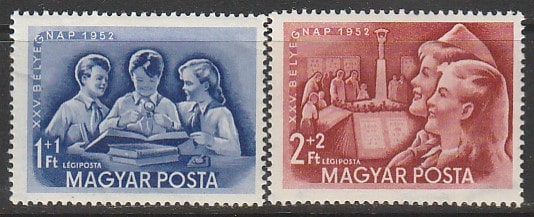 Венгрия 1952 год. Молодёжь на выставке почтовых марок, 2 марки.