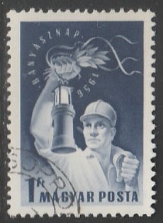 Венгрия 1956 год. Шахтёр с лампой, 1 марка (гашёная)