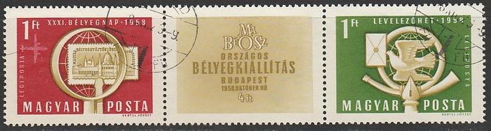 Венгрия 1958 год. Национальная филвыставка. 2 гашёные марки с купоном
