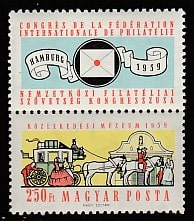 Венгрия 1959 год. Конгресс Международной федерации филателистов в Гамбурге, 1 марка с купоном