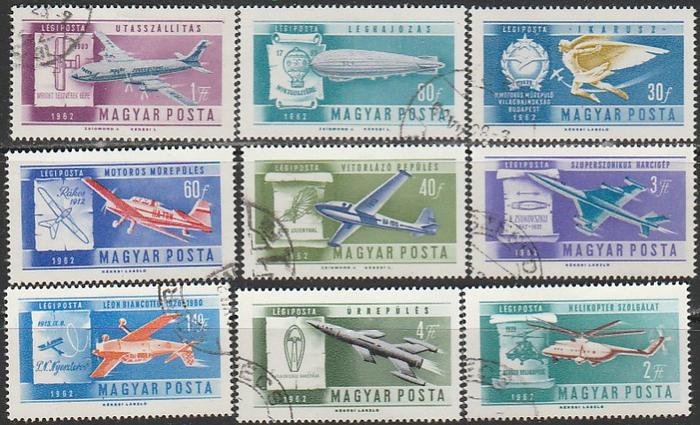 Венгрия 1962 год. Авиация, 9 гашёных марок