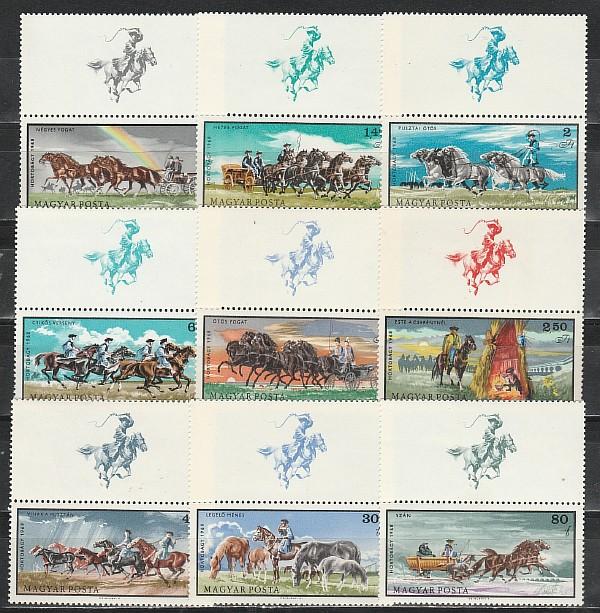Венгрия 1968, Лошади, 9 марок с купонами