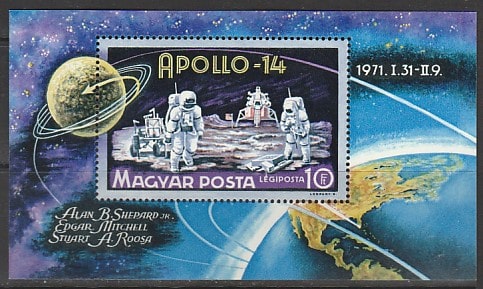 Венгрия 1971 год. Космическая программа "Аполлон-14", блок (наклейка)