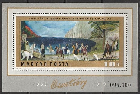 Венгрия 1973 год. Картина художника Т.К. Костина, блок (наклейка)