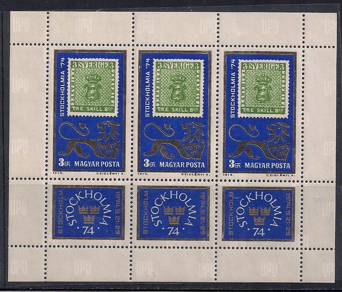Венгрия 1974 год. Выставка марок в Стокгольме. малый лист