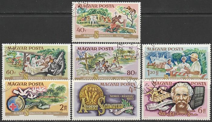 Венгрия 1975 год. 100 лет со дня рождения Альберта Швейцера, теолога, музыканта и философа. 7 гашёных марок