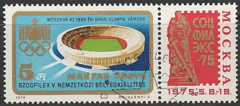 Венгрия 1975 год. Международная филвыставка "SOZFILEX-75" в Москве. 1 гашёная марка с купоном