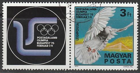Венгрия 1975 год. Олимпиада почтовых голубей, 1 гашёная марка с левым купоном