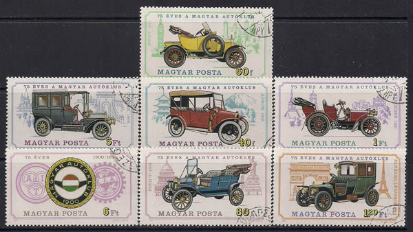 Венгрия 1975 год. Старинные автомобили. 7 гашёных марок