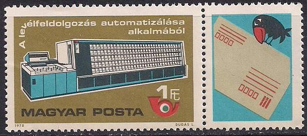 Венгрия 1978 год. Автоматизация на почте. 1 марка с купоном