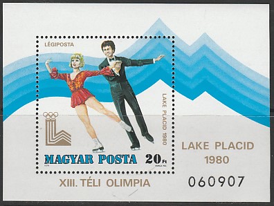 Венгрия 1979 год. Зимние Олимпийские игры в Лейк-Плэсиде. Фигурное катание, блок. (6,5)