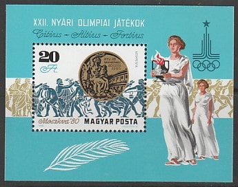 Венгрия 1980 год. Олимпиада в Москве, блок (наклейка)