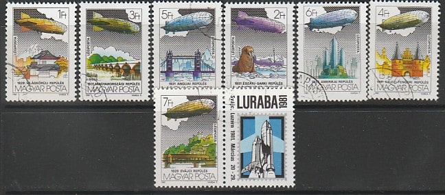 Венгрия 1981 год. Дирижабли, 7 марок, купон (гашёные)