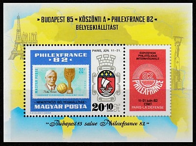 Венгрия 1982 год. Международная филвыставка в Париже, блок (наклейка)