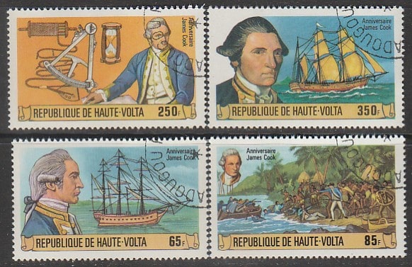 Верхняя Вольта 1978 год. 250 лет со дня рождения капитана Джеймса Кука, 4 марки (гашёные)