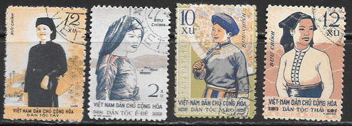 Вьетнам, 1960 год. Национальные костюмы. 4 гашёные марки