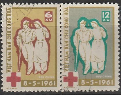 Вьетнам 1961 год. 98 лет Международному Красному Кресту. 2 гашёные марки