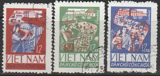 Вьетнам 1965 год. Выполнение I-й. Пятилетки. 3 гашёные марки