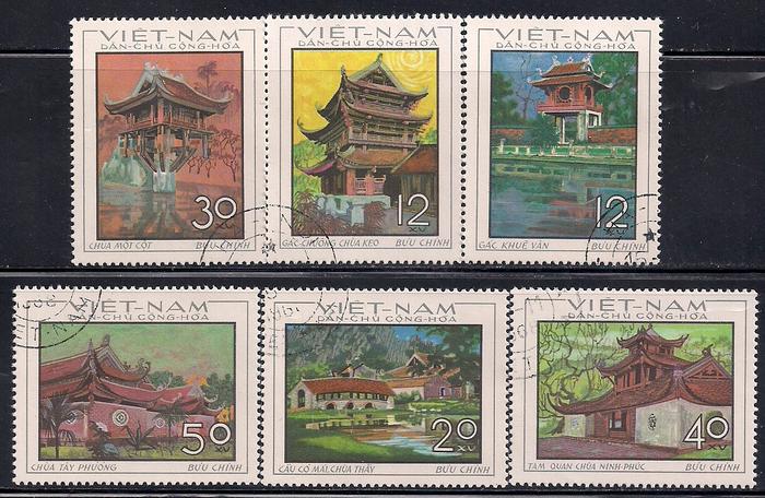 Вьетнам 1968 год. Старинные пагоды. 6 гашеных марок