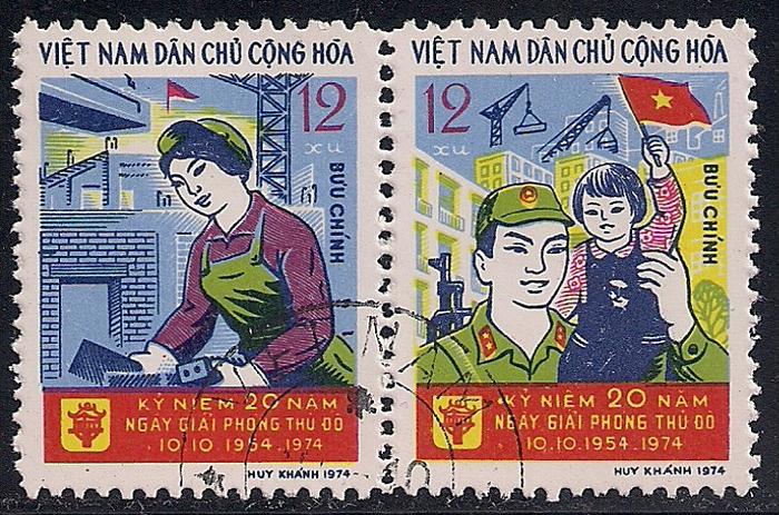 Вьетнам 1974 год. 20 лет освобождению Ханоя. 2 гашеные марки