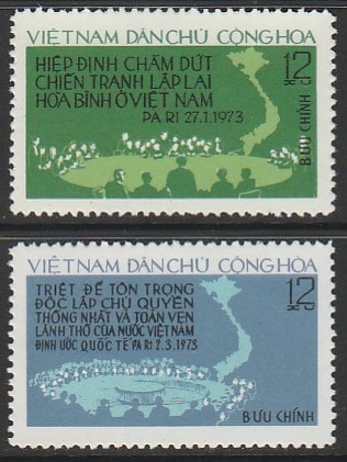 Вьетнам 1975 год. Вторая годовщина Парижского соглашения, 2 марки.