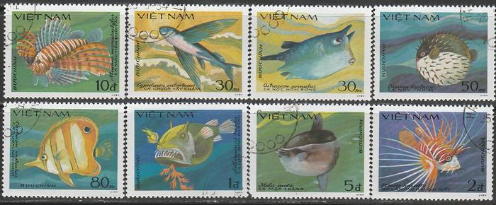 Вьетнам 1984 год. Морские рыбы, 8 гашёных марок С/з