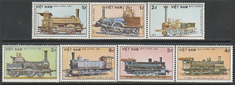 Вьетнам 1985 год. 150 лет немецкой железной дороге, 7 марок. (11)