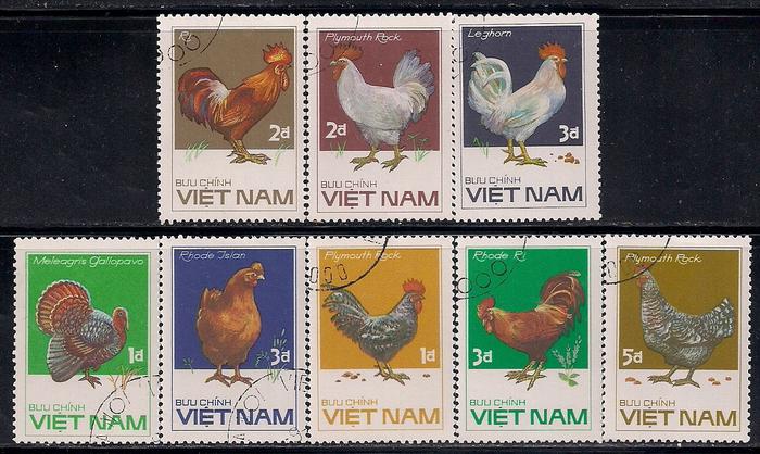 Вьетнам 1986 год. Петухи. 8 гашеных марок