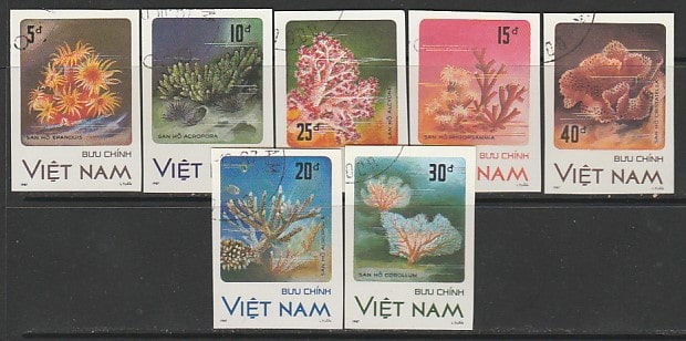 Вьетнам 1987 год. Кораллы, 7 б/зубц. марок (гашёные)