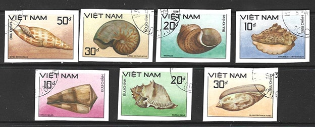 Вьетнам, 1988 год. Морские раковины. 7 беззубцовых гашеных марок