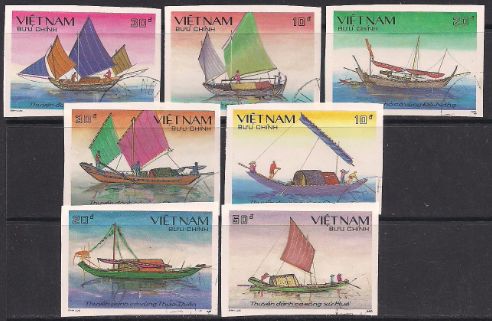 Вьетнам 1988 год. Парусные корабли. 7 гашеных марок без зубцов