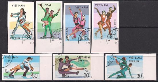 Вьетнам 1989 год. Фигурное катание. 7 гашеных марок без зубцов