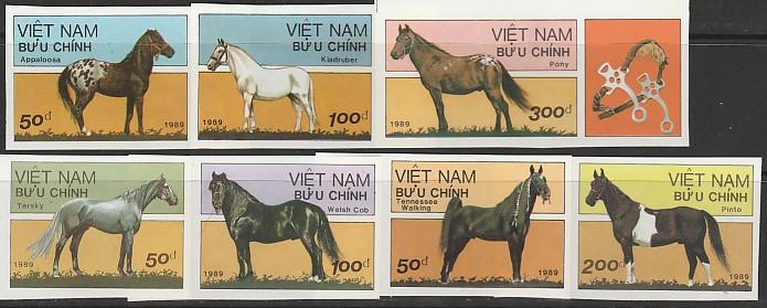Вьетнам 1989 год. Лошади, 7 беззубцовых марок