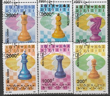 Вьетнам 1991 год. Шахматы. 6 гашеных марок.