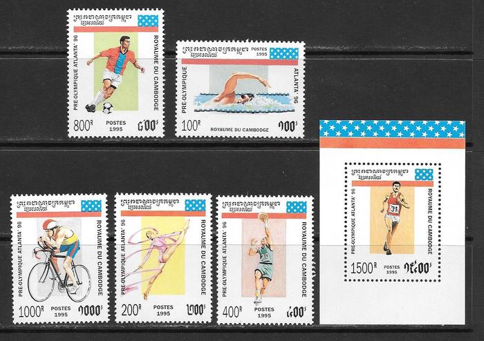 Виды спорта. Атланта 1996. Камбоджа 1995 год. 5 марок + блок
