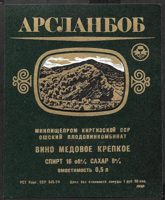 Винная этикетка. Арсланбоб. Вино медовое крепкое. 0,5 л