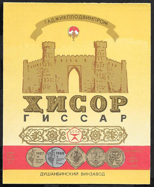 Винная этикетка. Хисор, Душанбинский завод. 0,7 л