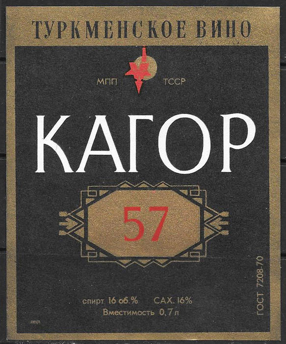 Винная этикетка. Кагор. Туркменское вино. 0,7 л