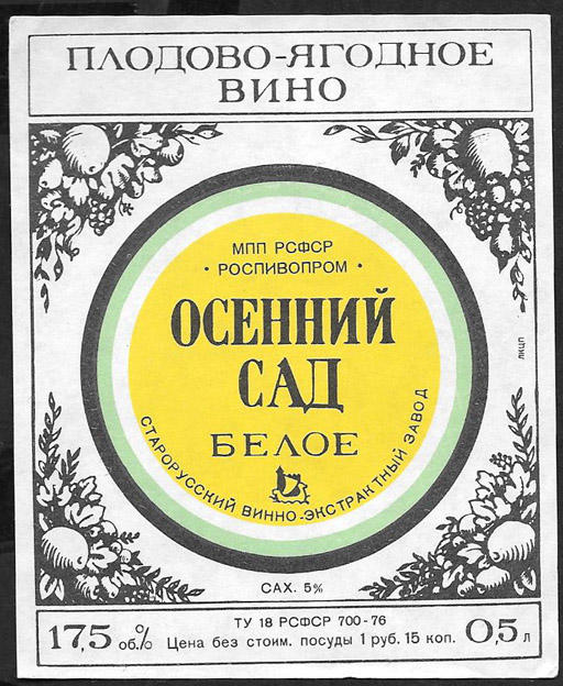 Винная этикетка. Осенний сад. Белое плодово-ягодное вино. 0,5 л