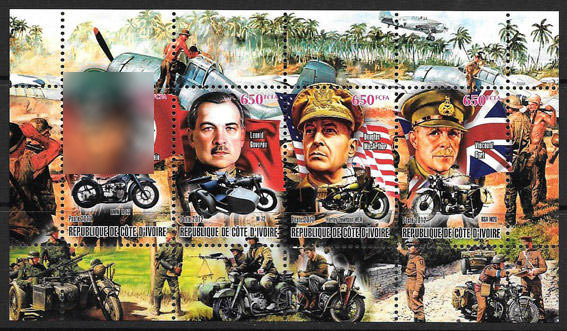 Военачальники стран участников Второй Мировой войны. Пехота. Кот де Ивуар 2012 г. Малый лист. наклейк