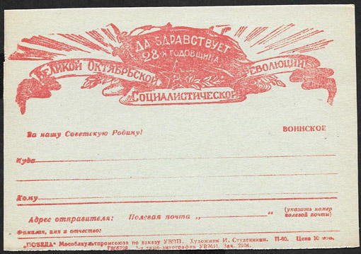 Воинское ПК. 28-я годовщина Великой Октябрьской Революции. Обрезана сбоку и снизу