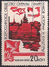 Всероссийское общество охраны памятников истории и культуры. Членский взнос 20 копеек. 1 марка. Л-д