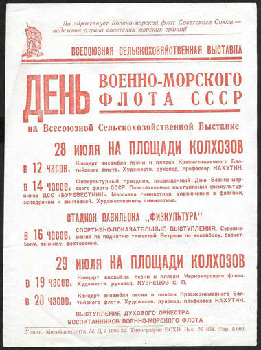 Всесоюзная сельскохозяйственная выставка. День военно-морского флота СССР