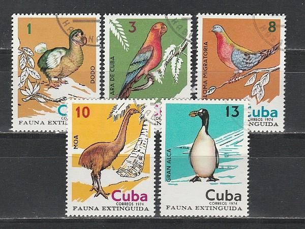 Вымершие Птицы, Куба 1974 год, 5 гашёных марок