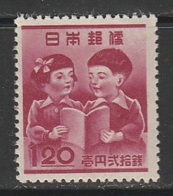 Япония 1948 год. Реформа системы образования, 1 марка (наклейка) (2,5/2)