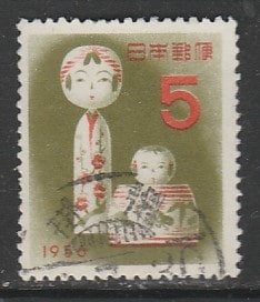 Япония 1955 год. Новый Год. Куклы, 1 марка (гашёная) (3,5/0,5)