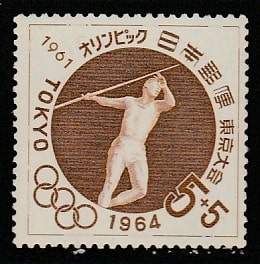 Япония 1964 год. Метание копья, памятная марка, сбор средств на Олимпийские игры в Токио, 1 марка