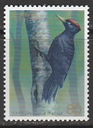 Япония 1995 год. Чёрный дятел, 1 марка (н