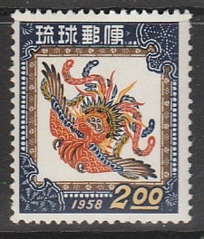 Япония. Острова Рюкю 1957 год. С Новым годом! Феникс, 1 марка.